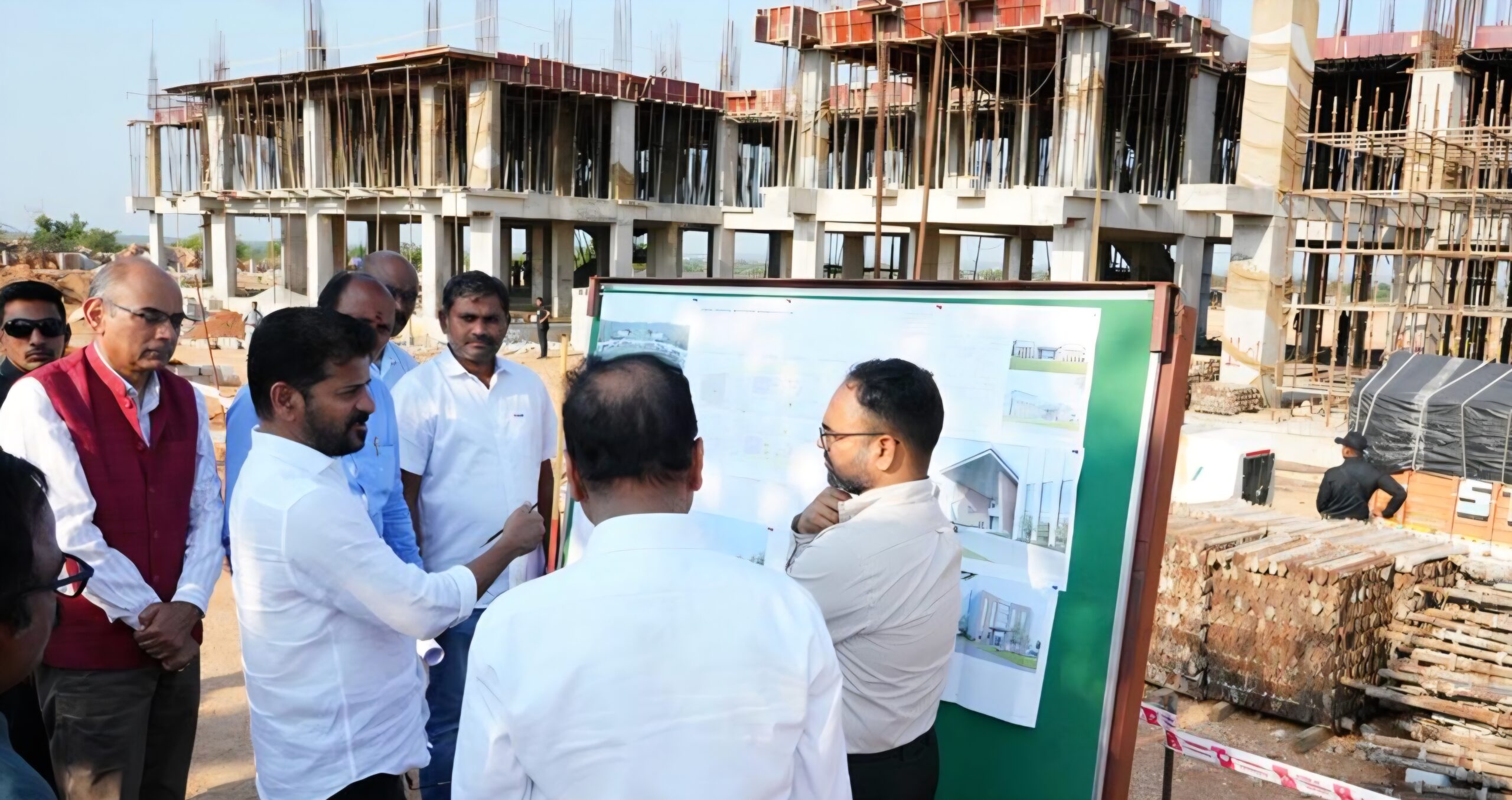 తెలంగాణ ప్రభుత్వం ప్రతిష్టాత్మకంగా అభివృద్ధి చేస్తున్న భారత్ ఫ్యూచర్ సిటీ పరిధిలో నిర్మాణంలో ఉన్న ఫ్యూచర్ సిటీ డెవలప్మెంట్ అథారిటీ (FCDA) కార్యాలయం, యంగ్ ఇండియా స్కిల్స్ యూనివర్సిటీ (YISU)కి సంబంధించిన భవన సముదాయాల నిర్మాణ పురోగతిని ముఖ్యమంత్రి రేవంత్ రెడ్డి పరిశీలించారు.