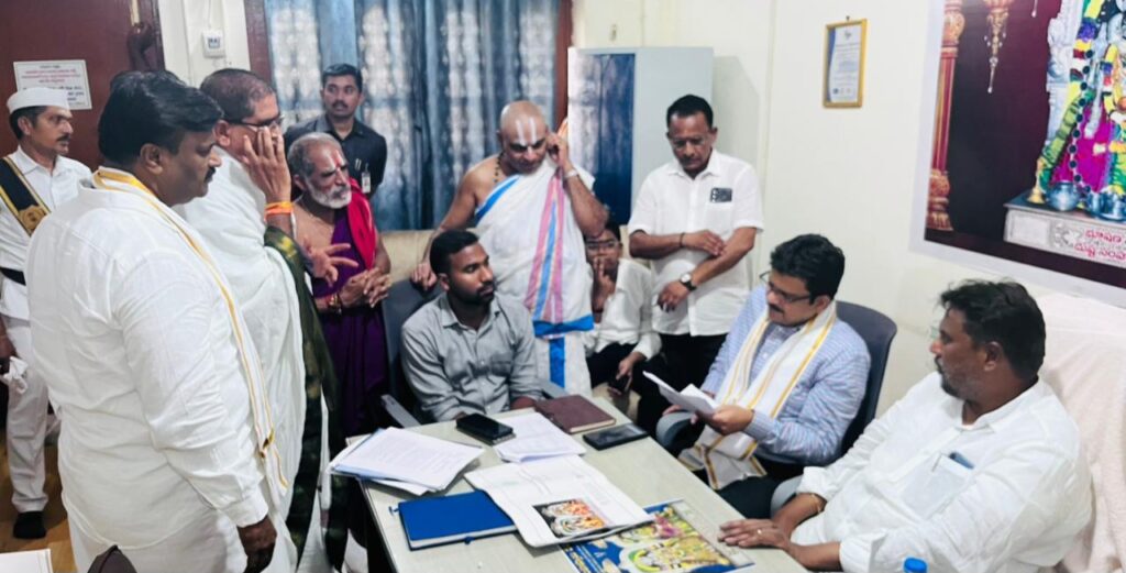 దశాబ్దాల కాలంకు పైగా ఆలయంలో పారిశుద్ధ్య పనులు (స్వీపర్ ) నిర్వహిస్తున్న వారికి నిబంధనల మేరకు జీతాలు పెంచడానికి అవరోధాలు ఏమిటో అని ? రాష్ట్ర ఎస్సీ ఎస్టీ సంక్షేమ శాఖ మంత్రి అడ్లూరి లక్ష్మణ్ కుమార్ దేవాదాయ శాఖ కమిషనర్ హనుమంతరావు దృష్టికి తెచ్చి సమస్యను వివరించారు.