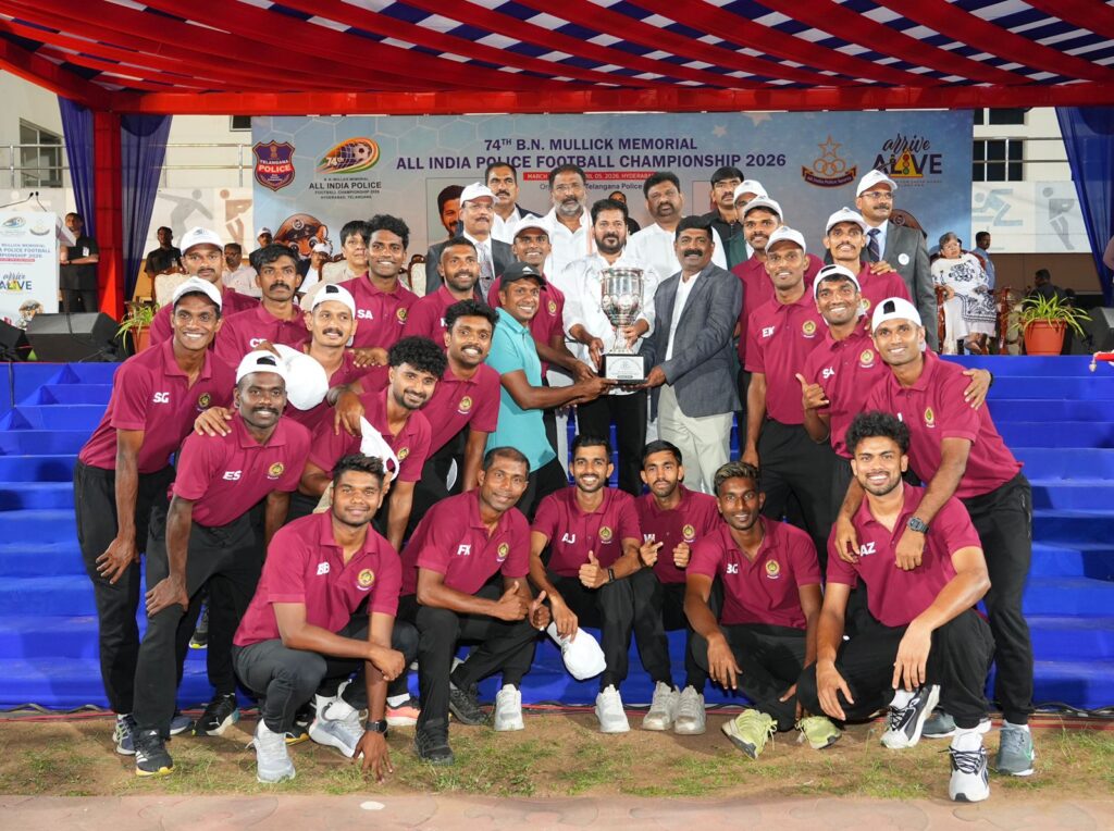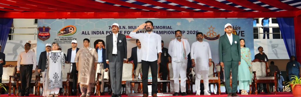 👉 హైదరాబాద్ గచ్చీబౌలీ స్టేడియంలో తెలంగాణ పోలీసు శాఖ ఆధ్వర్యంలో జరుగుతున్న 74వ బోలానాథ్ ముల్లిక్ స్మారక ఆల్ ఇండియా పోలీస్ ఫుట్బాల్ చాంపియన్షిప్ 2026 ముగింపు కార్యక్రమంలో ముఖ్యమంత్రి పాల్గొన్నారు.
